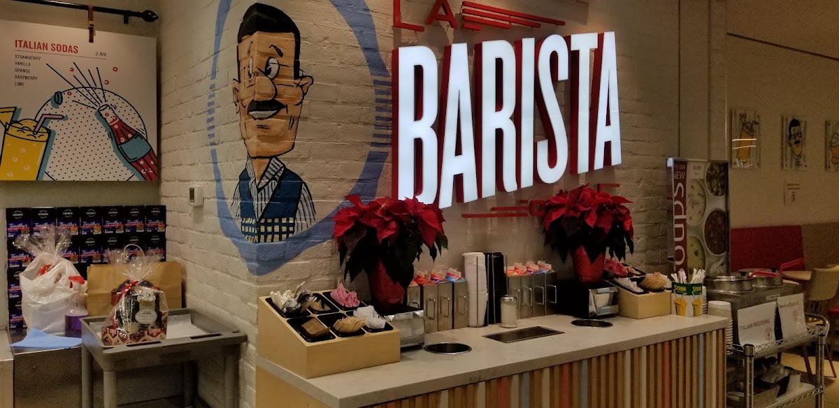 The menu at La Barista Cafe primarily features a variety of coffee options, including flavored coffees such as vanilla hazelnut and toasted coconut. Alongside the coffee selection, the cafe offers a range of baked goods suitable for pairing with beverages. The menu is designed to cater to customers seeking coffee breaks or light meals, with items available for quick self-service ordering. Seating arrangements support casual dining and working visits, with options to enjoy coffee in reusable mugs or paper cups.